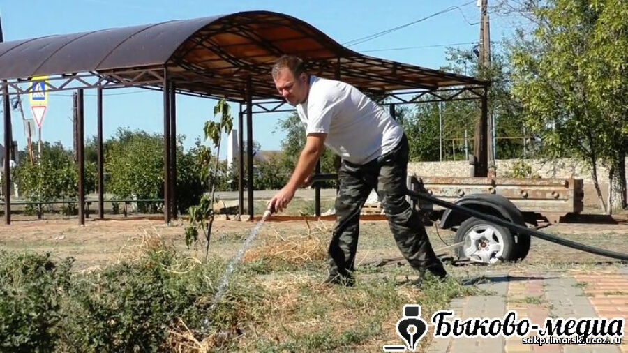 Работниками учреждения коммунального хозяйства "Приморск" проводится прополка сорняков по лункам и тротуарным дорожкам, покос травы на площади, полив и обрезка деревьев, кустарников, полив и прополка цветочных клумб, что очень злободневно на протяжении всего жаркого и сухого лета. Эта рутинная каждодневная работа помогает содержать территорию парка в порядке и приучает односельчан любить и ценить то место, где они родились и живут.